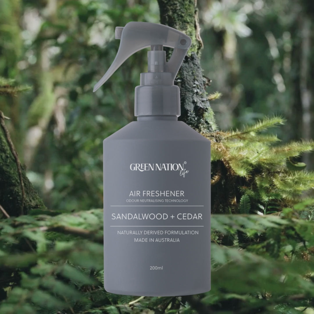 INGREDIENTS: WATER, SOLUBILISERS, FRAGRANCE (INFUSED WITH ESSENTIAL OILS), ODOUR ABSORBER, PRESERVATIVE.